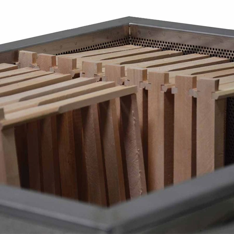 - Obsługa: napełnić zbiornik wodą, umieścić ramki w perforowanym koszu, podgrzewać wodę palnikiem gazowym lub paliwem stałym (palnik gazowy nie jest w zestawie).