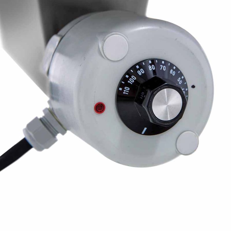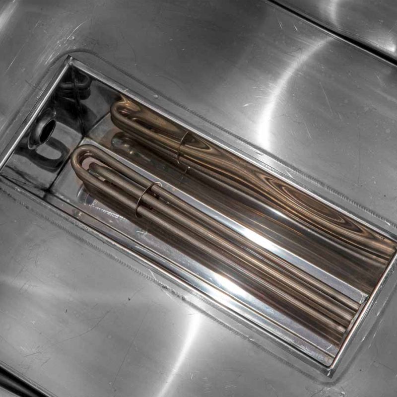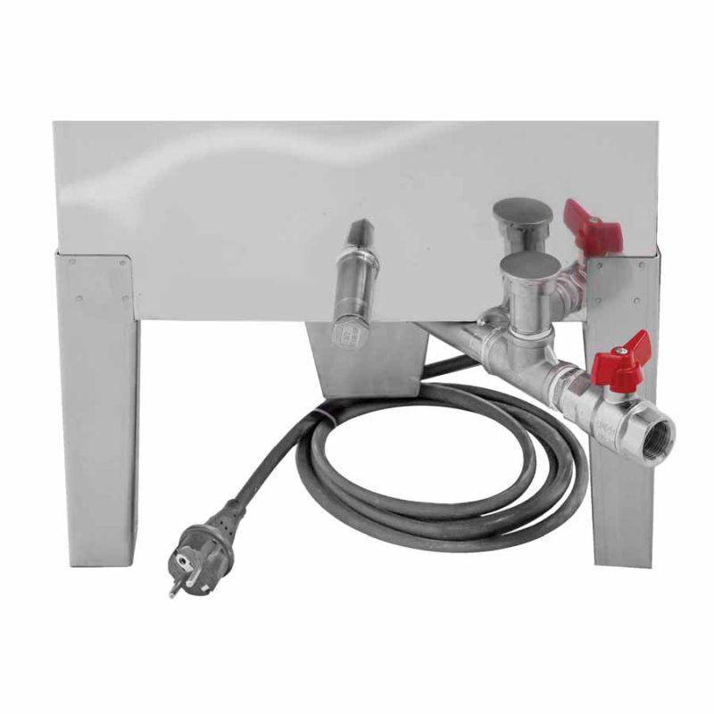 - grzałki zanurzeniowej z rurą 3 kW/230 V z regulacją temperatury 30–110 °C oraz zabezpieczeniem przed pracą na sucho.