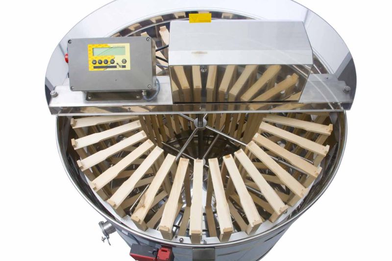 48-ramkowa wirowarka radialna Logar z napędem elektrycznym 750 W i w pełni elektronicznym, w pełni automatycznym sterowaniem. Wirowarka mieści 48 ramek (pełne/płaskie) i umożliwia jednoczesne, obustronne opróżnianie ramek dzięki sile odśrodkowej i naturalnemu nachyleniu komórek, co eliminuje konieczność przewracania ramek. Wszystkie elementy mające kontakt z miodem wykonano z materiałów dopuszczonych do kontaktu z żywnością. Pokrywa wykonana z przezroczystego akrylu wyposażona jest w blokadę bezpieczeństwa, która uniemożliwia otwarcie podczas pracy.
