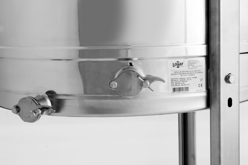 - Kran miodowy: zgrzany w najniższym punkcie; średnice kranów: 1× Ø38 mm + 1× Ø42 mm