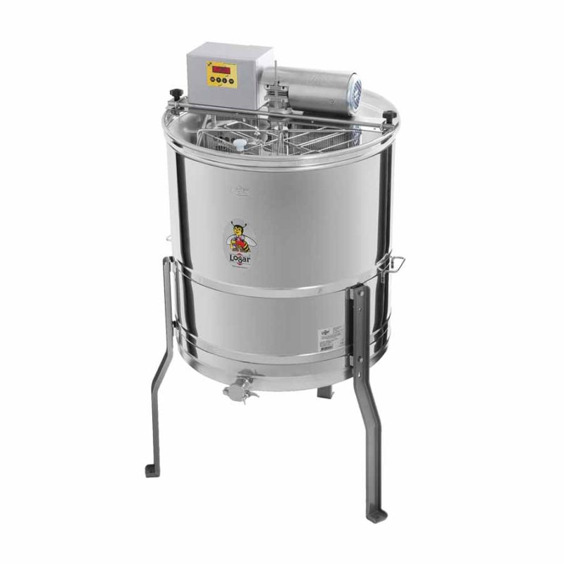 Innowacyjna wirówka do miodu z automatycznym odwracaniem ramek i dwustronnymi kieszeniami – zaprojektowana do wydajnego odwirowywania dużej liczby niskich plastrów przy niewielkiej średnicy bębna. 8-ramkowa wirówka z napędem elektrycznym (110 W / 230 V) posiada w pełni automatyczne sterowanie oraz wyłącznik bezpieczeństwa, który natychmiast zatrzymuje silnik po otwarciu pokrywy. Dwustronne kieszenie na plastry są oddzielone blachą, po której spływa miód. Najnowocześniejsza technika oraz bezszwowo zespawane, nachylone ku odpływowi dno zbiornika umożliwiają całkowite odprowadzenie miodu. Nierdzewny, zaciskowy kran miodu jest przyspawany w najniższym możliwym punkcie, co pozwala na pełne opróżnienie zbiornika. Wszystkie części mające kontakt z miodem wykonane są z materiałów dopuszczonych do kontaktu z żywnością. Pokrywa wykonana jest z przezroczystego tworzywa akrylowego, a specjalnie zaprojektowane nóżki zapewniają stabilność urządzenia.